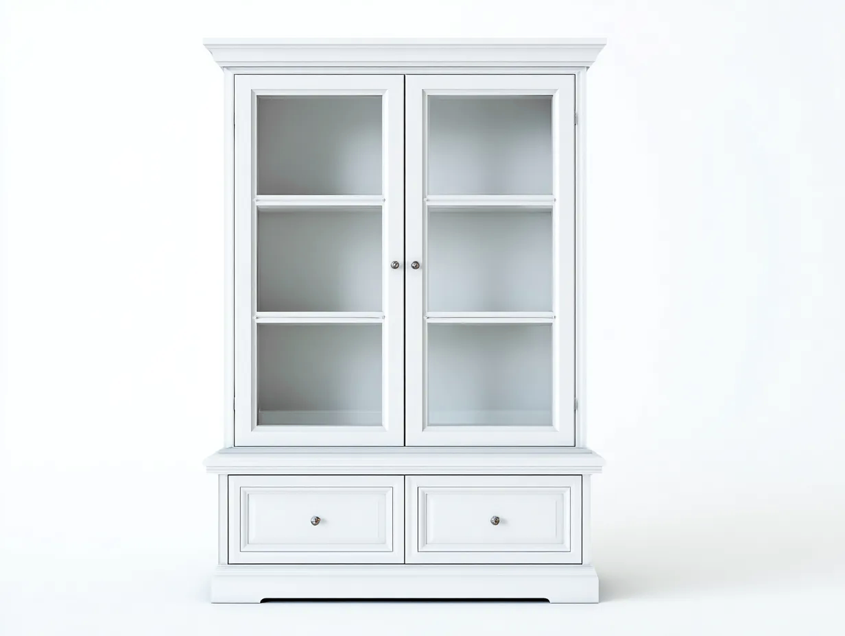 Vetrina-legno-vetro-114x47x200 cm-bianco-stile classico