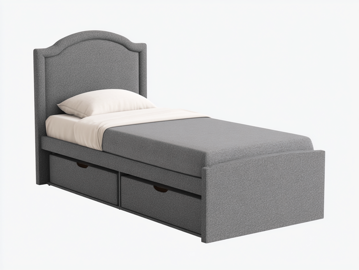 Letto singolo dal design moderno con linee morbide e proporzioni equilibrate, adatto per camera da letto o stanza per ospiti. La struttura imbottita crea un aspetto accogliente e ordinato, ideale per ambienti domestici contemporanei.