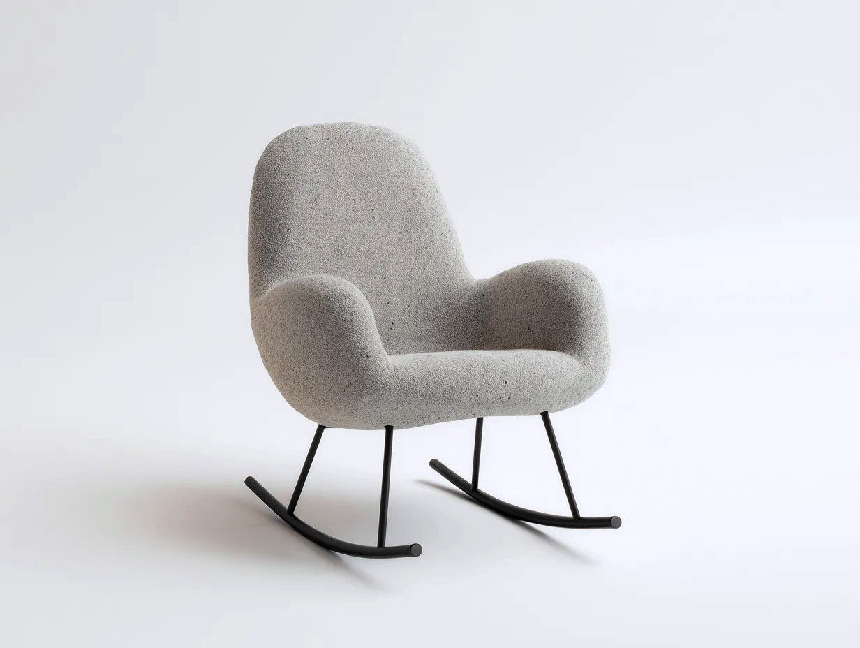 Questa sedia a dondolo dal design moderno è ideale per arredare soggiorni e camere da letto con uno stile elegante e funzionale. La forma ergonomica e la seduta ampia offrono un comfort elevato, perfetto per momenti di relax quotidiano.
